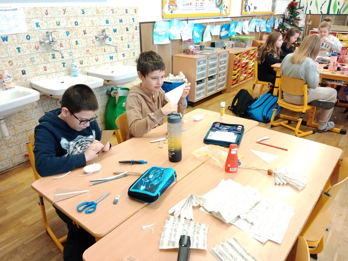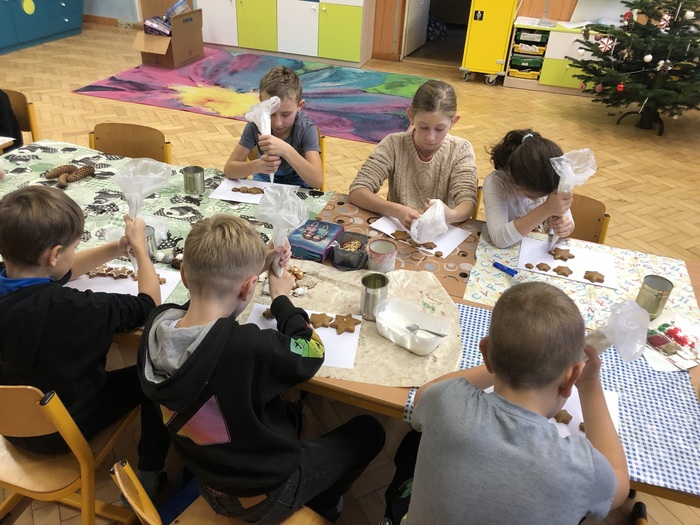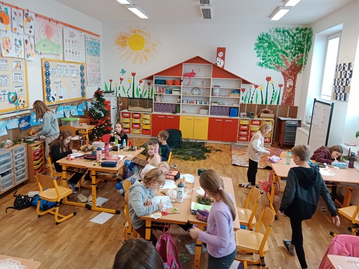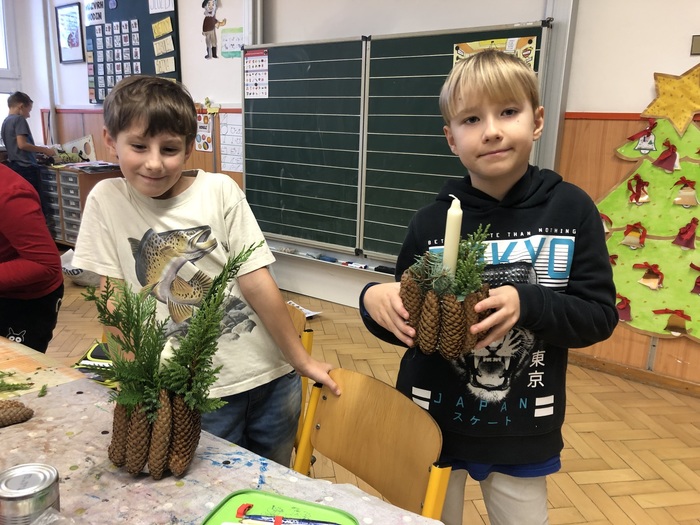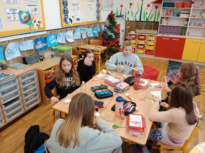 Letos proběhly vánoční dílny ve středu 6. prosince, a to trochu v jiném stylu než v minulých letech. Žáci pracovali na svých výrobcích v kmenových třídách, bez pomoci rodičů a prarodičů, jen se svou paní učitelkou. Každá třída si naplánovala jiné dekorace, o to byly výtvory pestřejší. A že se všem povedly! Děti byly moc šikovné, pracovaly se zaujetím a výsledky tomu odpovídaly.