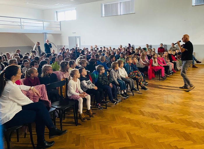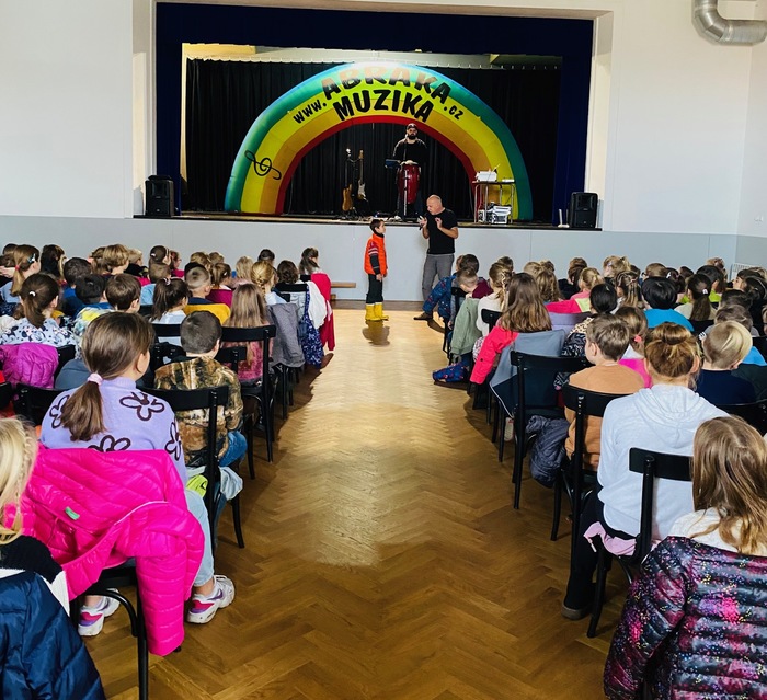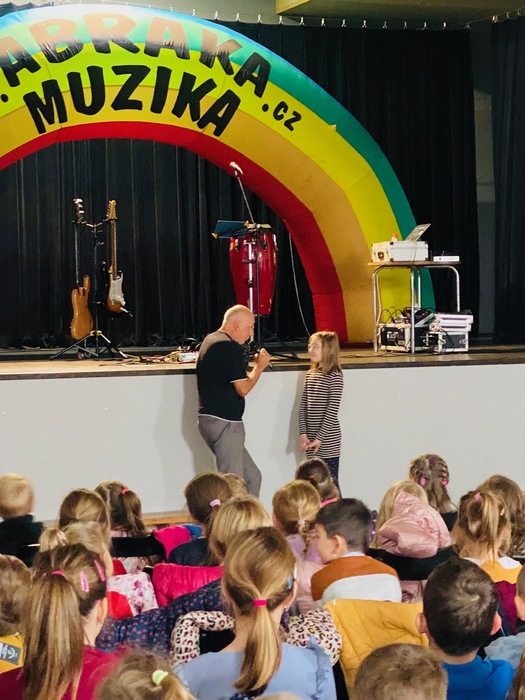 Výchovný koncert skupiny Abraka Muzika má vždy prvky umělecké i výchovné. Zkušený skladatel a hudebník PaedDr. Petr Jan Novák pro nás připravil zážitkový program složený z písniček, her a dramatizací. Celý program byl nazván JÁ A ONI. Mluvili jsme proto o komunikaci, ohleduplnosti, respektu, ale také o mediální agresi a dezinformacích. Uvědomili jsme si, že ne všechny zprávy, které se objeví na sociálních sítích a internetu jsou pravdivé. Učili jsme se, jak se v takových situacích zachovat a jak se vyznat v digitálním světě. Koncert byl zábavný i poučný.