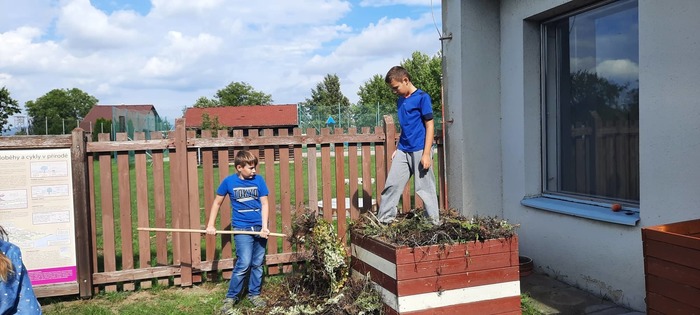 Po prázdninách jsme se opět sešli v přírodovědném kroužku. Moc rádi ho navštěvujeme. První naše kroky vedly do přírodovědné učebny. Tam byla spoušť! Vrhli jsme se do práce. Ostříhali bylinky, vytrhali plevel a vysbírali ostříhané haluze ze stromů. Už to tam máme zase pěkné.