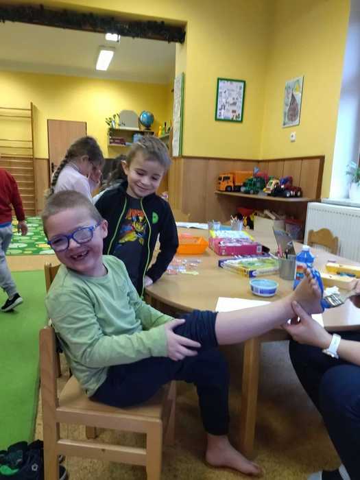 Nový rok děti zahájily náročnou Tříkrálovskou stezkou, skládáním jmen Tří králů a dalšími úkoly. Také navštívily kostel a podívaly se, jestli se už Ježíšek narodil. Měly možnost se podívat na varhany a dostaly sladké občerstvení ve formě perníčků. Děkujeme. Děti se nezapomněly postarat ani o zvířátka - nasypaly semínka do krmítka pro ptáčky a také šly ke krmelci nasypat kaštany a kukuřici. Spoustu zábavy si děti užily při společném tvoření zimního pozadí a sněhuláčků, obtiskování svých nožiček a tvorbě letadýlek a tvoření bruslí. Sněhu v lednu bylo málo, zato ledu ke klouzání a dovádění bylo dost. Svou zdatnost si děti mohly otestovat při zdolávání disciplín zimní olympiády - bruslení v igelitových sáčcích, plazení ve "sněhu," skok přes překážku, chůzi po úzké sněhové cestě. Děti se také učily skákat přes švihadlo, moc je to bavilo.