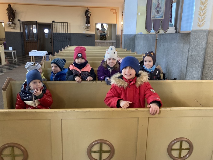 V pátek 5.1.2024 děti z MŠ navštívily místní kostel. Děti s úžasem pozorovaly vánoční výzdobu v kostele, ale také obdivovaly jesličky s Ježíškem, Josefem a Marií, nesmíme opomenut ani Tři krále, o kterých jsme si celý týden povídali.