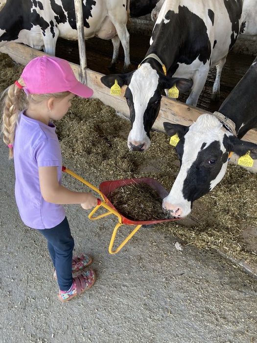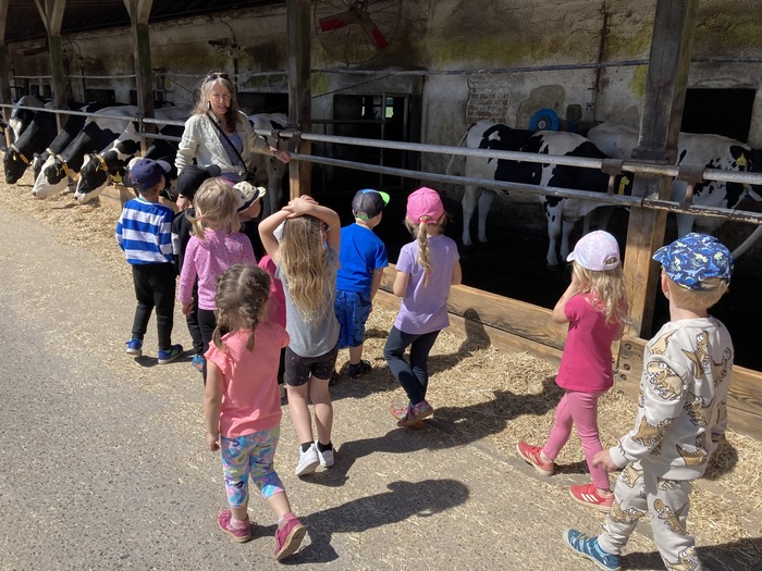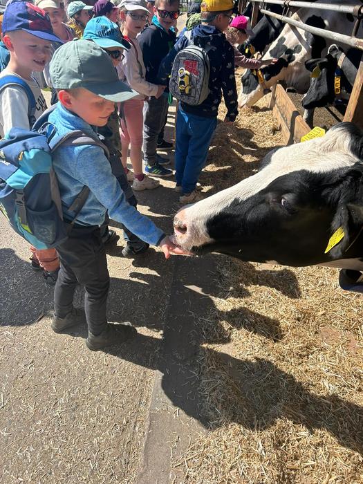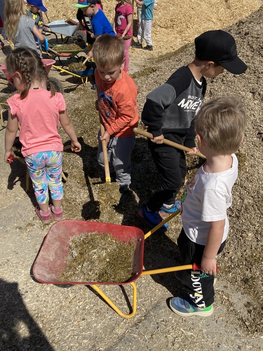 V úterý 14.5.2024 jely děti z MŠ na výlet do Doubravského Dvora. Největším zážitkem pro ně bylo, když mohly nakládat krmení pro kravičky na kolečka a společně to kravičkám dovést a nakrmit je. Podívali jsme se také, kde se krávy dojí nebo v jakých domečcích bydlí telátka. Děti si také pochutnaly na výborné zmrzlině. I počasí nám přálo a moc jsme si to všichni užili!